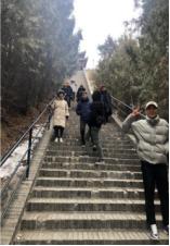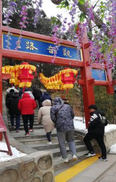 第二天早上9:00點,我們團體到達紅螺寺景區(qū),位于北京市懷柔區(qū)城北5公里的紅螺山南麓,距北京市區(qū)55公里,景區(qū)總面積800公頃,國家AAAA級旅游區(qū)。始建于東晉咸康四年(公元338)年,原名“大明寺”(明正統(tǒng)年間易名“護國資福禪寺”,因紅螺仙女的美妙的傳說,俗稱“紅螺寺”)。紅螺寺坐北朝南,依山勢而建,布局嚴謹,氣勢雄偉?,F(xiàn)在時節(jié)三九,北方冰天雪地,此時攀登由緩緩的山勢而上,身體慢慢散發(fā)熱量,爬到山頂已經(jīng)是大汗淋漓,站在頂端俯視村莊,遠眺雁西湖畔、懷柔水庫,高矮錯落的房子......心境舒爽。