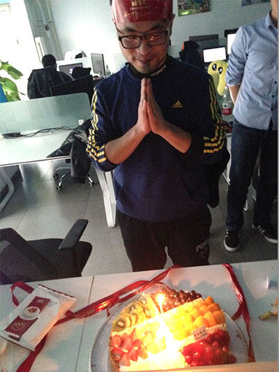 接下來“傳統(tǒng)生日會”照例為12月份過生日的同事點(diǎn)燃蠟燭(本月為兩位天坦伙伴),唱起祝福的生日歌,分享香甜可口的蛋糕,頒發(fā)“功夫熊貓”,這可是真正的功夫熊貓,在集齊24式功夫熊貓的同事,可以換到房子的鑰匙,這也是“壽星”最大的幸運(yùn),同時(shí)也是為了激勵天坦人勇往拼搏、直線進(jìn)取設(shè)置的最大獎項(xiàng)。