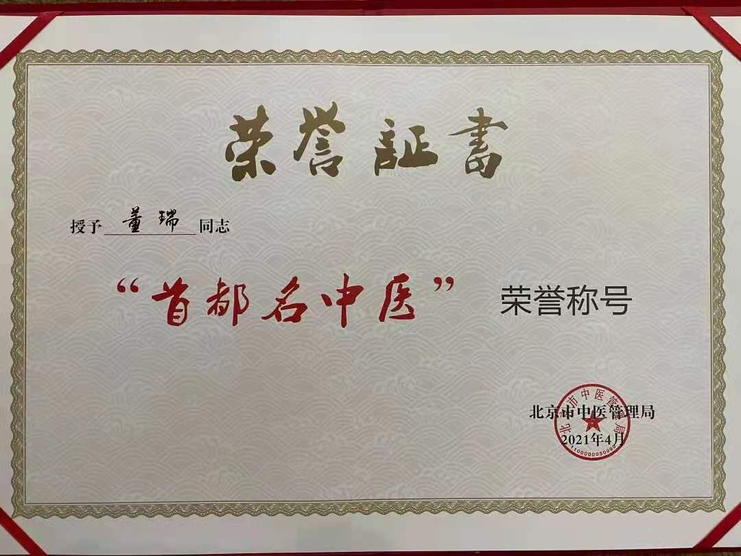 傳承、守正、創(chuàng)新、大醫(yī)精誠(chéng),是對(duì)董瑞三十五年中醫(yī)藥生涯的真實(shí)寫(xiě)照,榮獲首屆“首都名中醫(yī)”榮譽(yù)稱號(hào),是對(duì)他從醫(yī)以來(lái)一直致力于中醫(yī)文化傳承、堅(jiān)守臨床一線的肯定,也是他對(duì)“敬佑生命、救死扶傷、甘于奉獻(xiàn)、大愛(ài)無(wú)疆”的職業(yè)精神的最好詮釋。